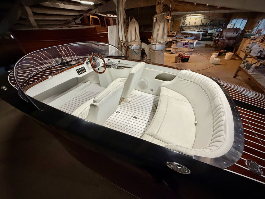 Hull construction: Cold molded mahogany - epoxy - fiberglass - foam core composite, where all wood is completely encapsulated in epoxy and coated with a thick polyurethane clear coat, that provides all the required UV and water protection.